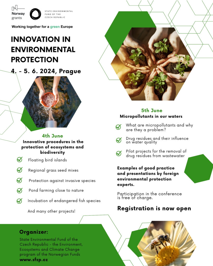 The international professional conference „Innovation in Environmental Protection“ successfully brought together experts and practitioners dedicated to innovative approaches in environmental protection. The two-day event, organized by the State Environmental Fund of the Czech Republic, focused on groundbreaking projects addressing water pollution caused by pharmaceutical residues and novel solutions in environmental protection. All of which were part of the „Environment, Ecosystem and Climate Change“ programme supported by the Norway Grants.